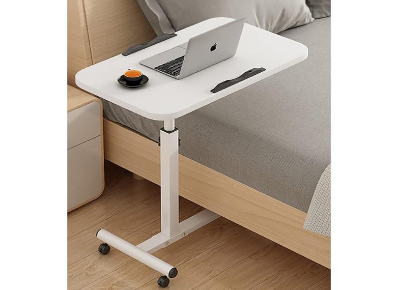 Mesas médicas sobrepostas Mesa de cabeceira dobrável com rodas, altura ajustável móvel sobre a cama Mesa rolante para computador portátil Mesa final para escritório, hospital e casa, branca