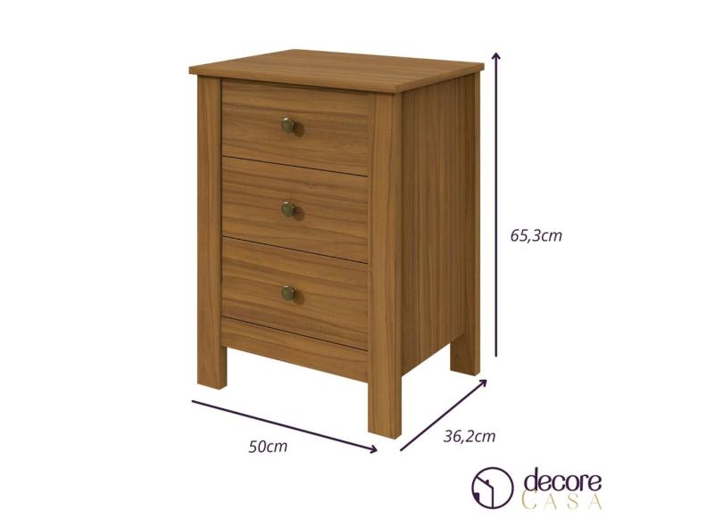 Mesa de Cabeceira 3 Gavetas Maggiore New Móveis Lopas Rovere Naturale