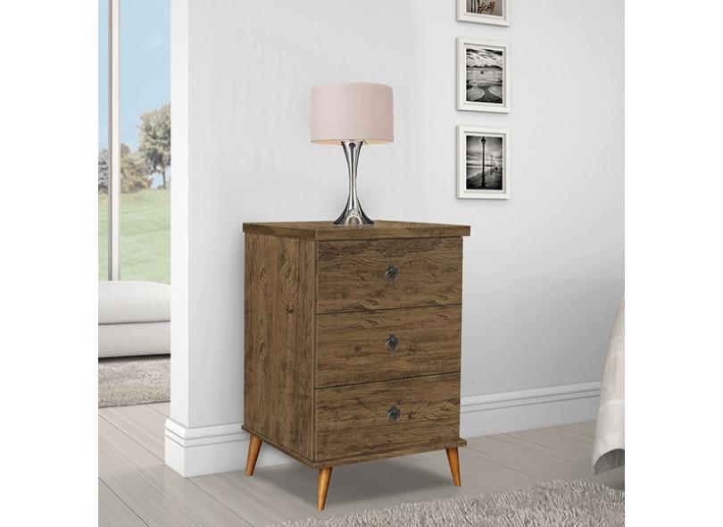 Mesa De Cabeçeira Creta 3 Gavetas Amendoa