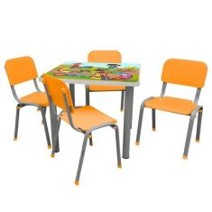Mesa com 4 Cadeiras Infantil Reforçadas Lg Flex Laranja