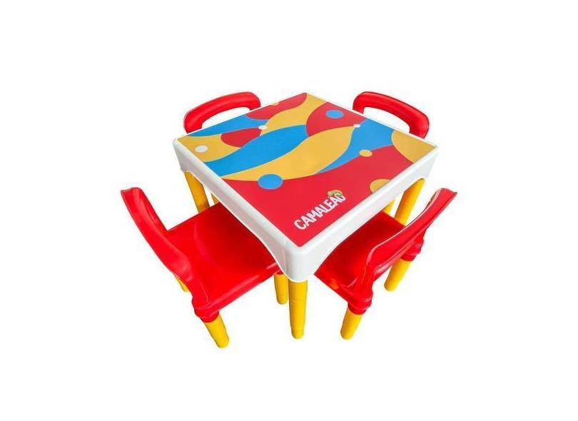Mesa Mesinha Conjunto Infantil Com 4 Cadeiras Escolar Plástica Camaleã