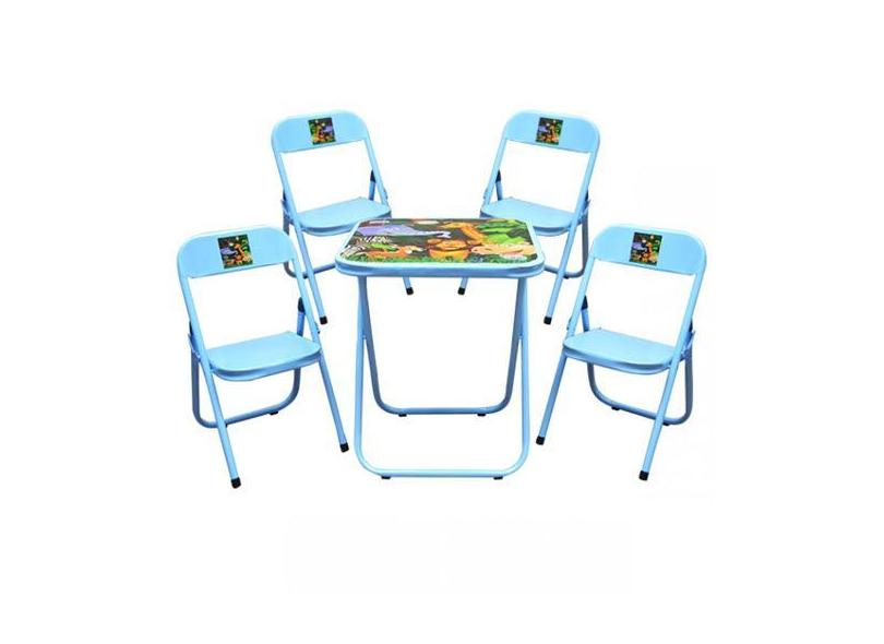 Mesa Mesinha Infantil Com 4 Cadeiras Aço Dobrável Conjunto Criança Som