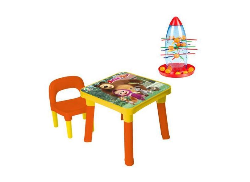 Mesinha Infantil Com Cadeira Masha E Urso + Jogo Foguete - Monte Líban