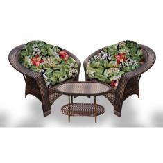 Conjunto de Poltronas Fibra Sintética 19 - 2 Poltronas + 1 Mesa Centro - Tecido Saquarema