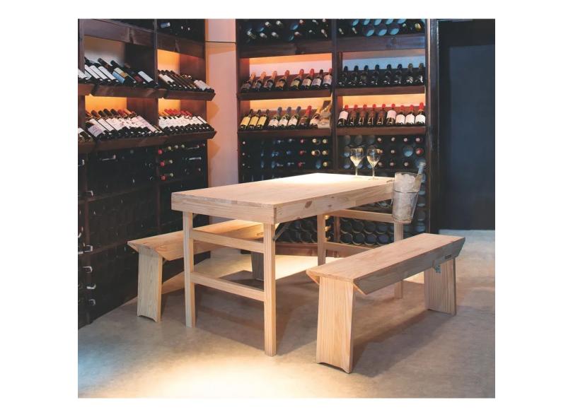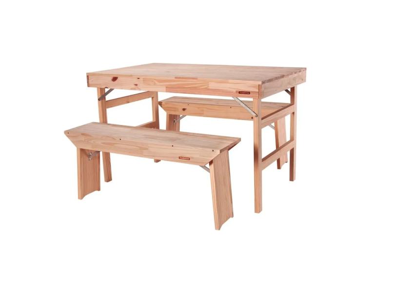 Conjunto Mesa e Bancos Tramontina Dobráveis Naturalle em Madeira Pinus com Acabamento Natural 1300 mm