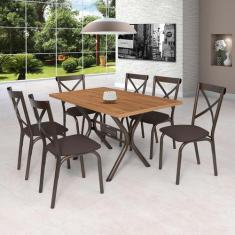 Conjunto de Mesa 6 Cadeiras Karina Ciplafe Bronze/Linho Bege