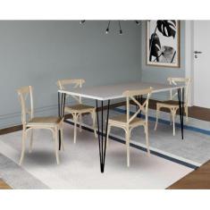 Conjunto De Mesa Elen Retangular Tampo De Madeira 140x80cm Com
