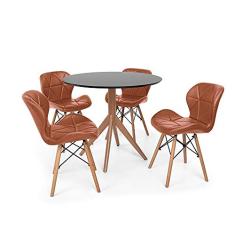 Conjunto Mesa de Jantar Maitê 80cm com 4 Cadeiras Eames Eiffel Slim - Marrom