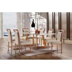Conjunto Sala de Jantar Mesa Madeira Maciça 6 Cadeiras Safira Mobilare Imbuia Natural/Off