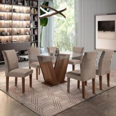 Conjunto Sala De Jantar Mesa Tampo De Vidro 6 Cadeiras Classic Cel Móveis Chocolate/Suede 90