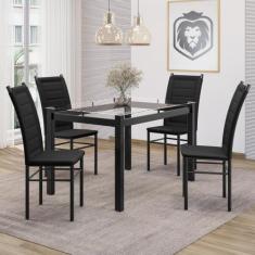 Conjunto Sala de Jantar Mesa Tampo de Vidro 80cmx120cm 4 Cadeiras Ivete Siena Móveis