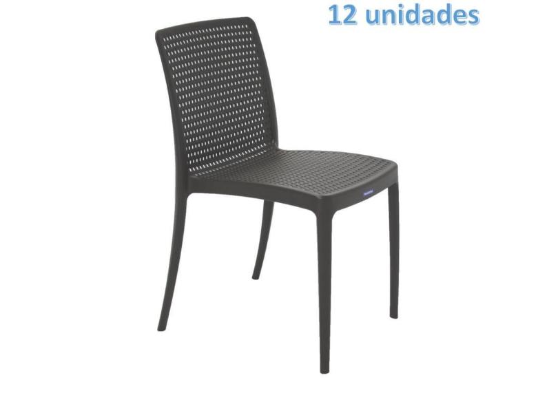 Kit 12 Cadeiras Plastica Monobloco Isabelle Marron Tramontina