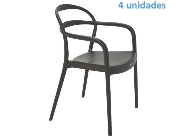 Kit 4 Cadeiras Plastica Monobloco Com Bracos Sissi Marron Tramontina