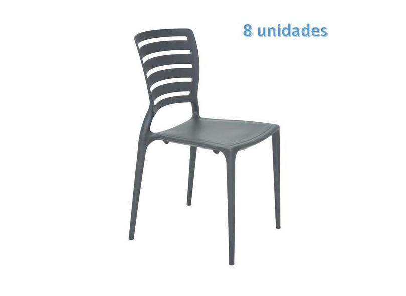 Kit 8 cadeiras plastica monobloco sofia grafite encosto vazado horizon