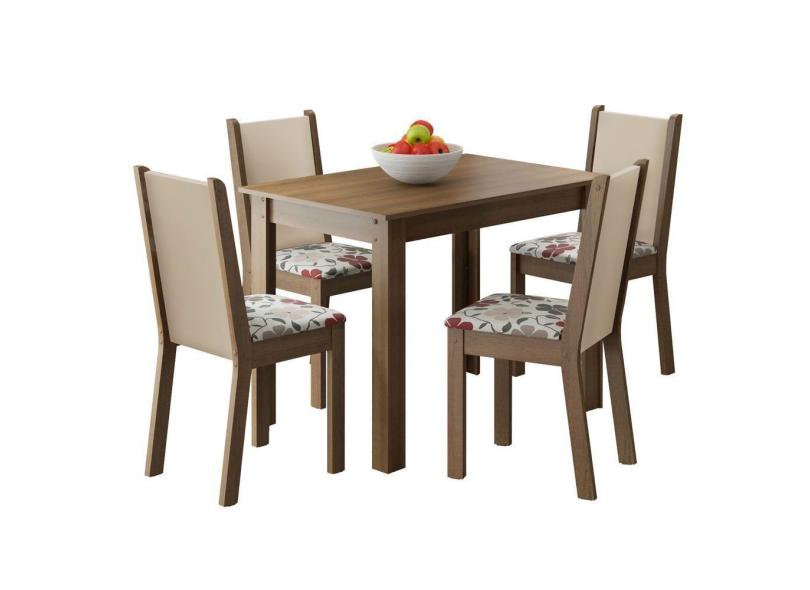 Kit Cíntia Hibiscos Mesa Tampo De Madeira 4 Cadeiras Madesa