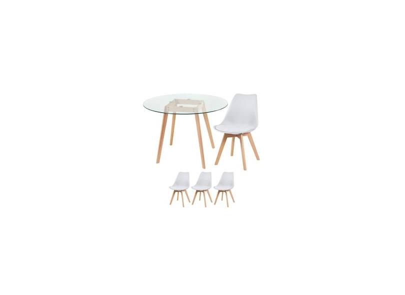 KIT - Mesa redonda de vidro Leda 100 cm + 3 cadeiras estofadas Leda
