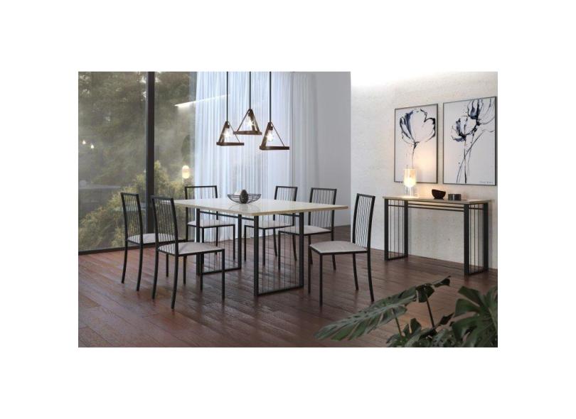 Mesa Atos 6 Lugares Com Tampo Mdf E Vidro Serigrafado Mais Decor Fosco/Siena/Off White