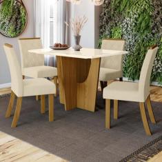 Mesa De Jantar 4 Lugares Denise Nature/off White/linho - Bci Móveis