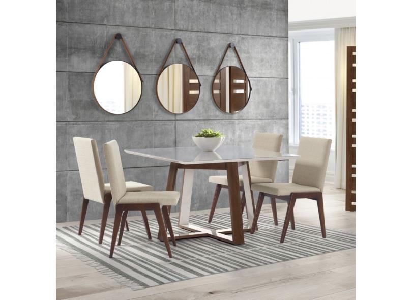 Mesa de Jantar Araçatuba 140 X 90 Cm Natural com Tampo de Vidro Off White