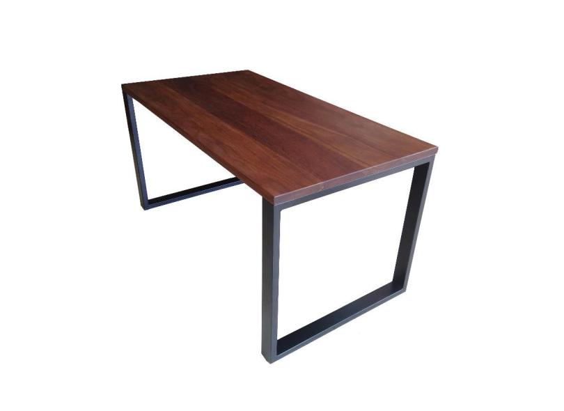 Mesa De Jantar Rustica Em Madeira Maciça Com Pés De Ferro Estilo Industrial 1,60 Mts