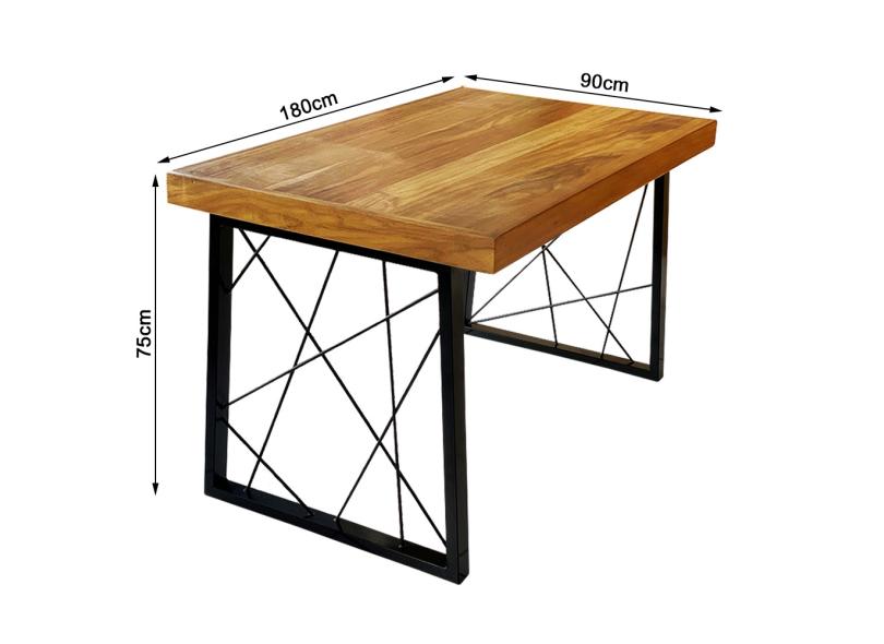 Mesa Eiffel Paris Estilo Industrial Madeira Maciça e Ferro 1,80m X 0,90m