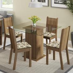 Sala De Jantar Magda Mesa Tampo De Vidro 4 Cadeiras Madesa