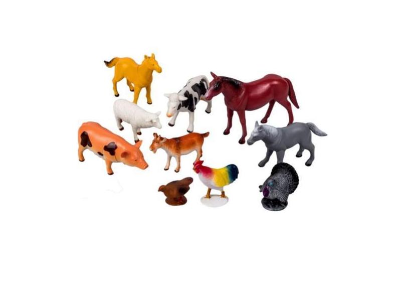 Kit Com 10 Animais De Brinquedo Miniaturas Zoo Fazenda - Cemtec