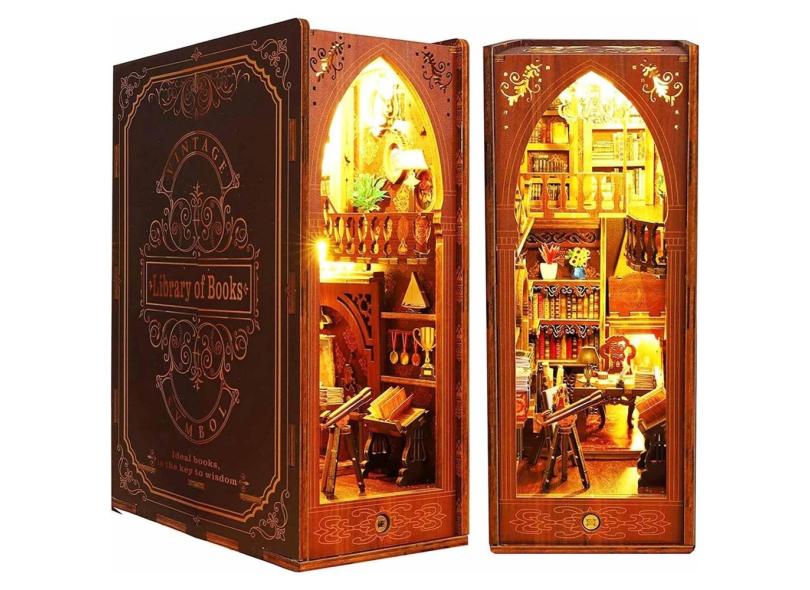 Kit de casa de bonecas em miniatura Funle Book Nook com luzes LED