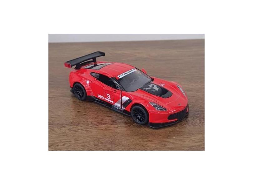 Miniatura Corvette C7-R 2016 Kinsmart 1/36 Metal e Fricção Vermelho Es