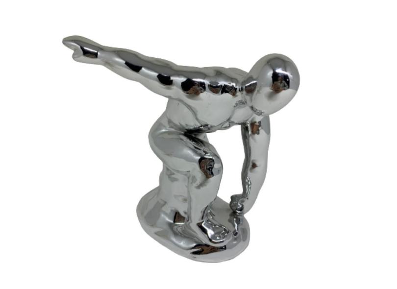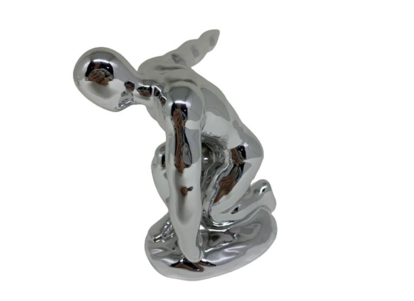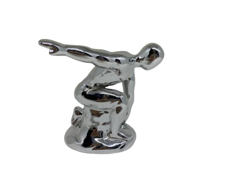 Escultura Decorativa Homem Prata De Cerâmica