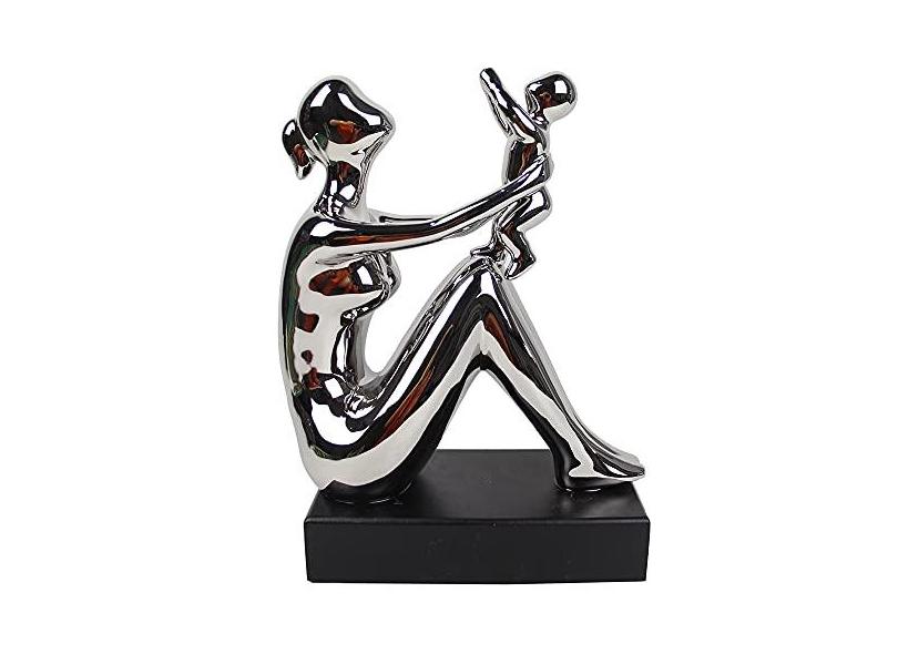 Estátua Mãe e Filho Decorativa 27x21x11cm Decor Luxo