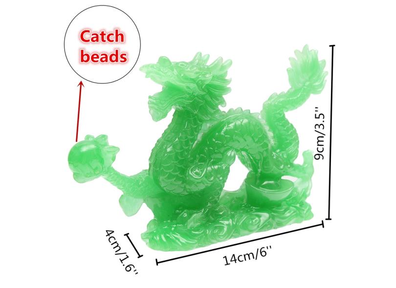 Jade Verde Chinês Feng Shui Estátua Ofício Estatueta Dragão para Sorte & Sucesso