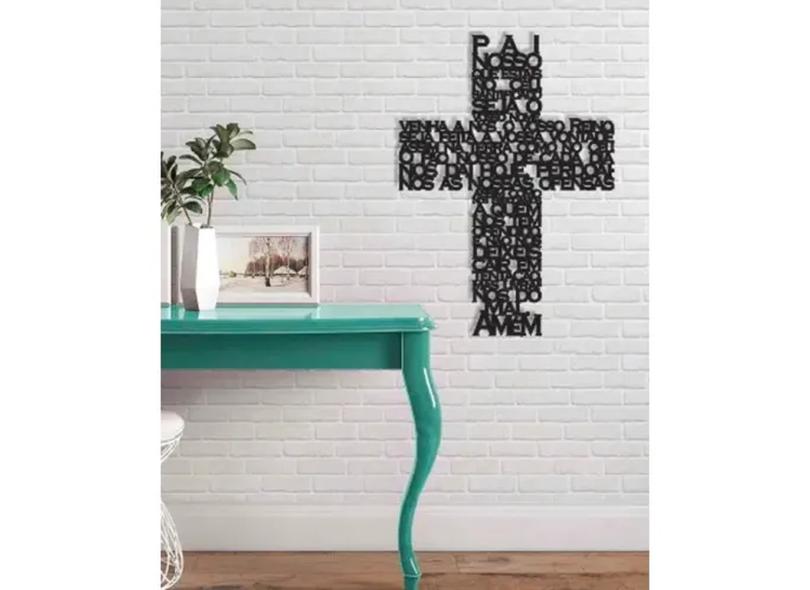 Pai Nosso Cruz 40X28Cm Em Madeira Mdf Escultura De Parede
