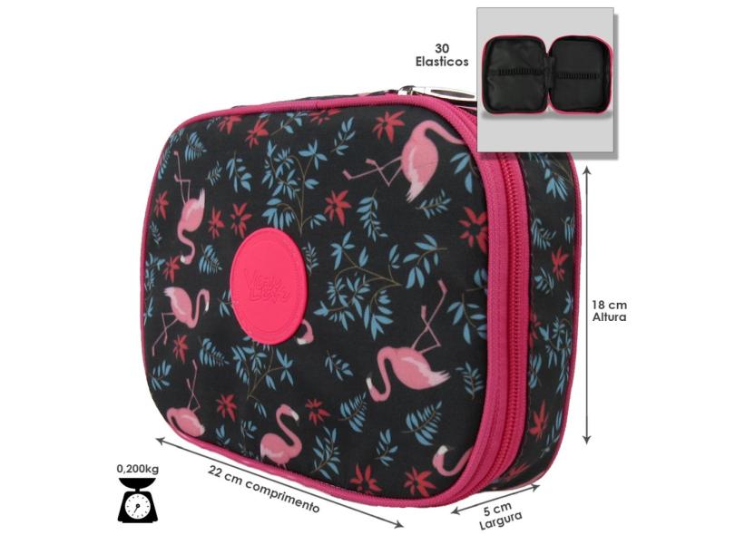 Estojo Escolar Grande Vou Leve 100 pens Flamingos
