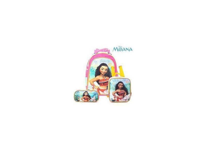 Kit Mochila Infantil Escolar Com Rodinhas Disney Moana