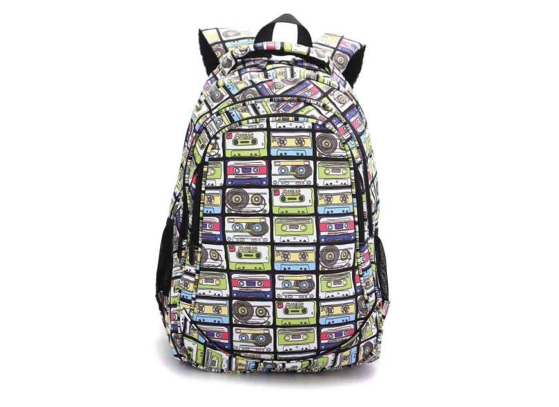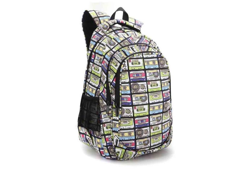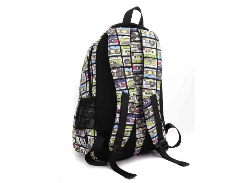 Mochila feminina escolar notebook estampa fita k 7 city rock