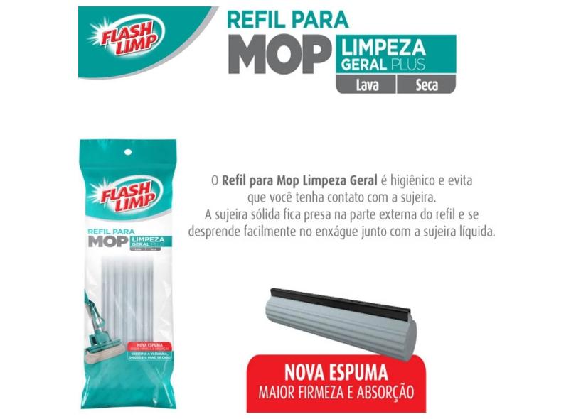 Refil Para Mop Limpeza Geral Plus Rodo Mágico Esponja PVA Lava Seca Substitui Vassoura Pano De Chão Flashlimp