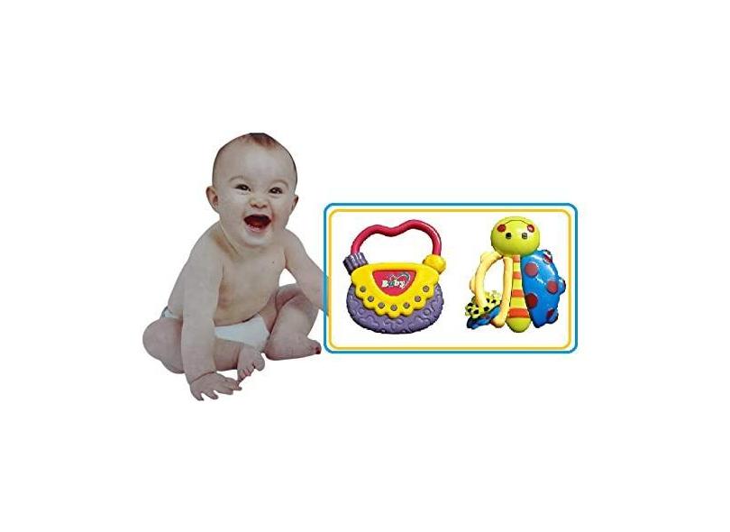 Kit com 2 Chocalhos Diferentes Coloridos e Divertidos Moppet Toys