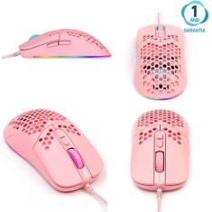 Mouse Gamer Rosa Rgb 7600 Dpi Óptico Usb 7 Botões Ambidestro Garantia