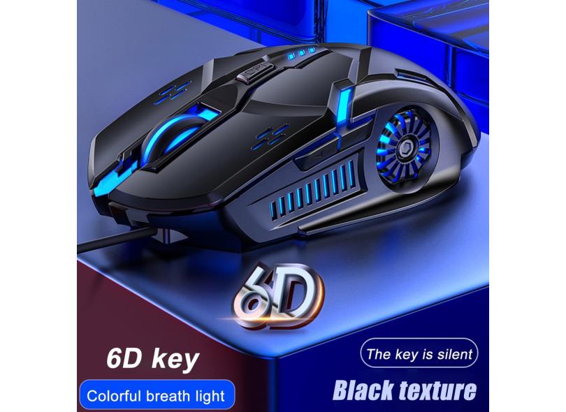 Mouse para jogos com fio 6D LED colorido com respiração de 3200 dpi Fashion Mouse mudo para colo