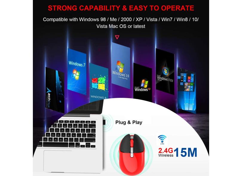 Mouse sem fio, mouse de computador 2.4G sem ruído com receptor USB, mouses portáteis silenciosos compatíveis com notebook, computador, PC, laptop, computador, MacBook ()