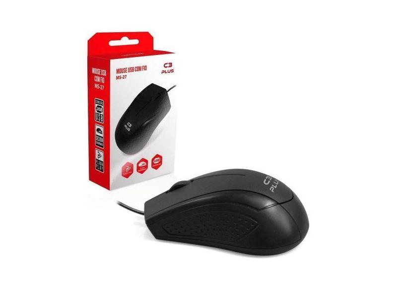 Mouse USB C3Plus MS-27BK, 1000 DPI, Preto