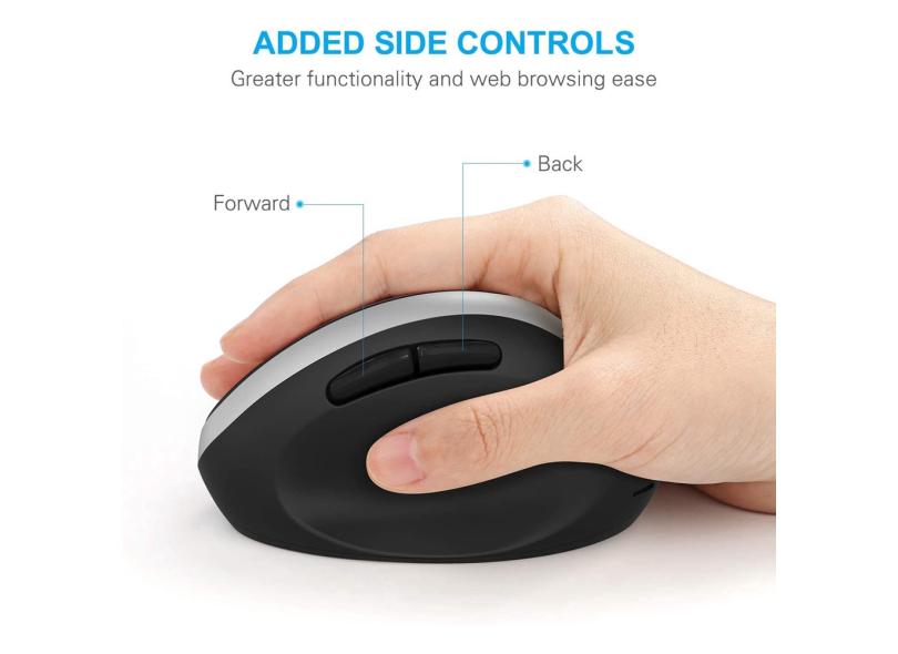 Mouse vertical sem fio, mouse sem fio de pente de geleia 2.4G de alta precisão Ratos ópticos ergonômicos de alta precisão para mãos pequenas ( e prata)