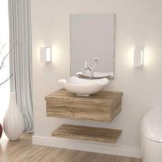 Bancada para Banheiro com Cuba Abaulada L42 Prateleira e Espelheira 606w Metrópole Compace Carvalho