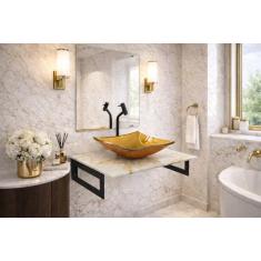 Gabinete De Vidro 50Cm Cuba Quadrada Mármore
