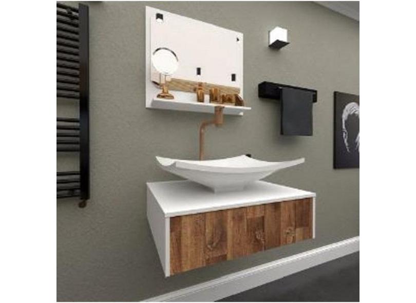 Gabinete Lavabo Banheiro Madri 50 Fresno Negro