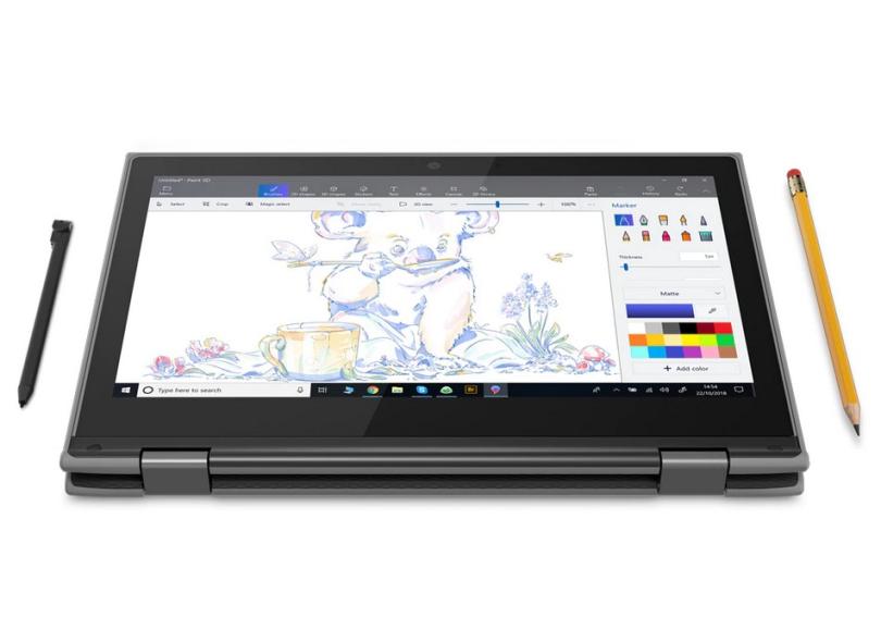O Notebook 2 em 1 Lenovo 300e 81M90042BR Intel Celeron N4100 11,6" 4GB eMMC 64 GB Windows 10 Touchscreen, da Lenovo, conta com o sistema operacional Windows 10. O laptop da Lenovo tem 29.0cm de largura, 20.4cm de profundidade e 2.0cm de altura, pesando 1.3kg. O 81M90042BR, da Lenovo, possui tela de resolução HD e 11.6". No quesito desempenho, o laptop Lenovo vem com o processador Intel Celeron N4100 e uma memória RAM de 4.0GB. Ele tem 64.0GB de espaço no seu eMMC, tecnologia de armazenamento mais veloz que o HD tradicional.Este Lenovo usa placa de vídeo Integrada (On-Board), não indicada para jogos ou programas de edição. O notebook Lenovo tem conexão sem fio por Wi-Fi (2.4 GHz e 5.0 GHz), Bluetooth para internet e para acessórios wireless. Além disso, ele tem entradas Áudio, USB 3.1, USB 2.0, HDMI, Leitor de cartão.