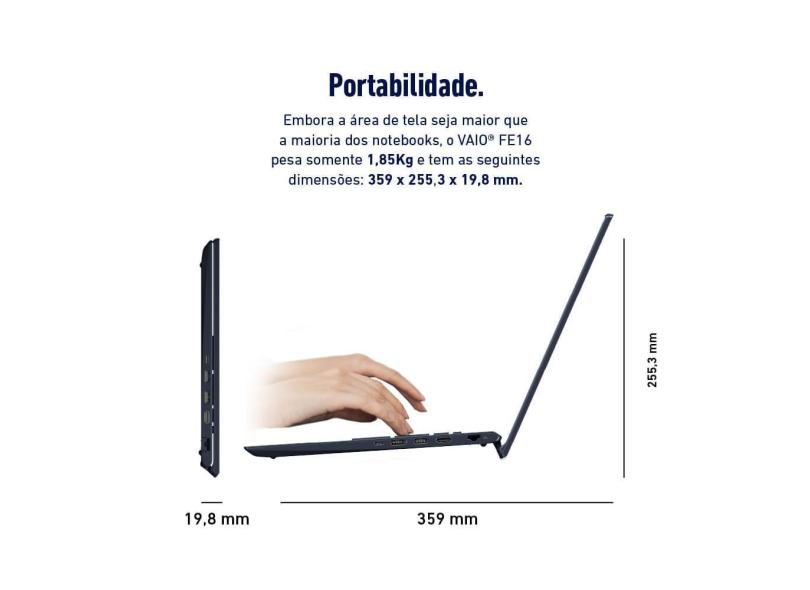 Notebook Vaio FE16 AMD Ryzen 7 5825U 16" 12GB SSD 512GB Linux VJFE69F11X-B1311H