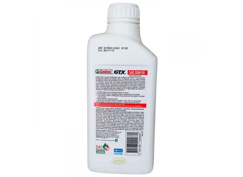 Óleo Para Motor Castrol GTX SAE 20w50 Anti-Borra