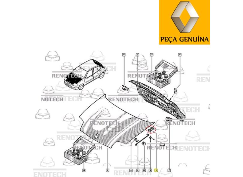7703077439 - SUPORTE PLÁSTICO DA VARETA DO CAPÔ - ACIMA 1999 - CLIO II